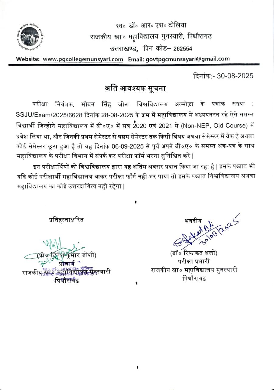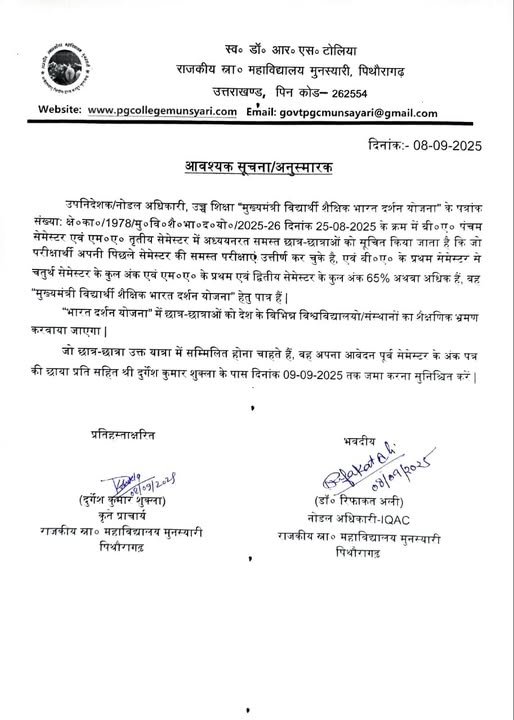 Government P. G. College Munsyari is an institution for empowering the youth, for the refinement of original ideas coming from interactive and creative minds of our dear students. The college offers an opportunity to invent and re-invent the cognitive minds. Our college believes in the motto: “Think globally, act locally”. ”. Our college aims to disseminate the knowledge and wisdom among the generations of learners and the teachers.