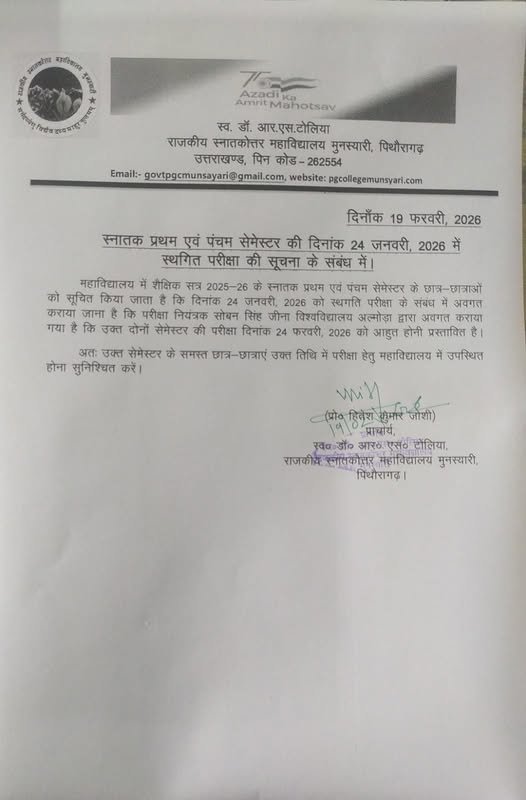 Late Dr. R. S. Tolia Govt. P. G. College Munsyari was established by Govt. Order No. 10282/ G. S. /2001, dated 19 July, 2001 from the Governor’s Office, Dehradun. Our college is named after former Chief Secretary and the first Chief of Information Commission of Uttarakhand, Dr. R. S. Tolia who originally belonged to the Munsyari region. Our college started its humble journey from 23 August, 2001 mainly with the objective of giving the economically backward students of this hill area a golden opportunity to study from this little town on the lap of Nature. With the establishment of this college, hopes and aspirations of the people of this hill area were met.