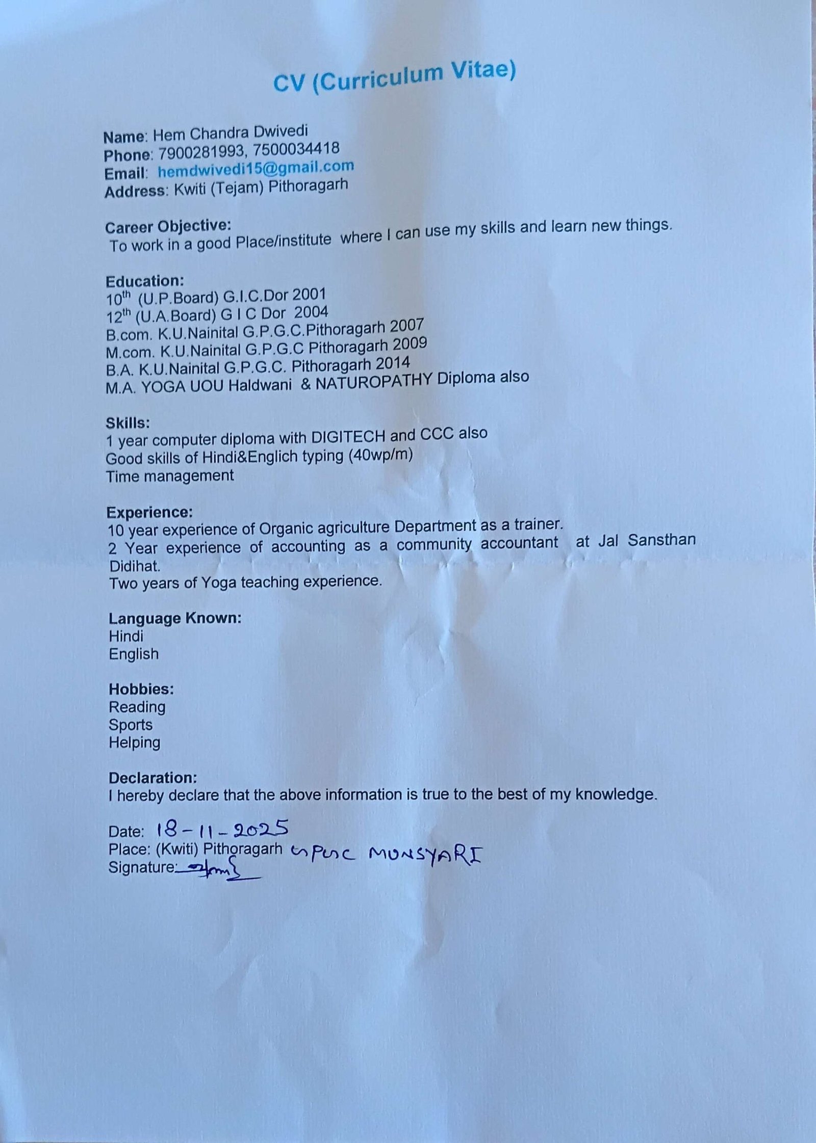 उपनल | प्रयोगशाला सहायक | kailashdewali@gmail.com | 8449634093 | 16.09.2013 |